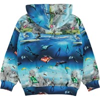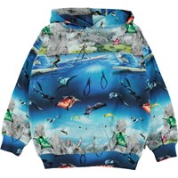 Matty er en farverig hættetrøje med flot print af forskellige ekstremsportsudøvere. Et print man virkelig kan udforske. Hættetrøjen er en del af Molo’s samarbejde med Kunsthal Aarhus til udstillingen Go Extreme.