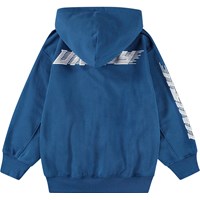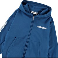 Blå hættetrøje med lynlås og kængurulomme i blødt økologisk bomuld samt ribkanter ved håndled og i bunden. Hættetrøjen har en løs pasform med et hvidt print af ordet 'Unity' på ryggen, ærmet og på brystet. Kombiner med matchende shorts for et komplet sæt.