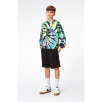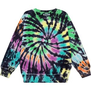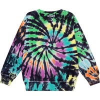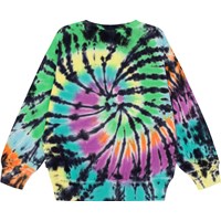 "Multifarvet økologisk sweatshirt med tie dye print. Trøjen har en normal pasform, en rund halsudskæring med ribkant og ribkant ved håndled og hofte.