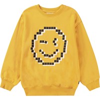 Multifarvet sweatshirt i tie-dye og økologisk bomuld med en rund halsudskæring, ribkant ved hofte og ærmer. Sweatshirten har en almindelig pasform og en børstet inderside, der gør den dejligt blød og varm at have på. Placeret print på fronten af et stort smilende ansigt i hvid, som laver et glitch.