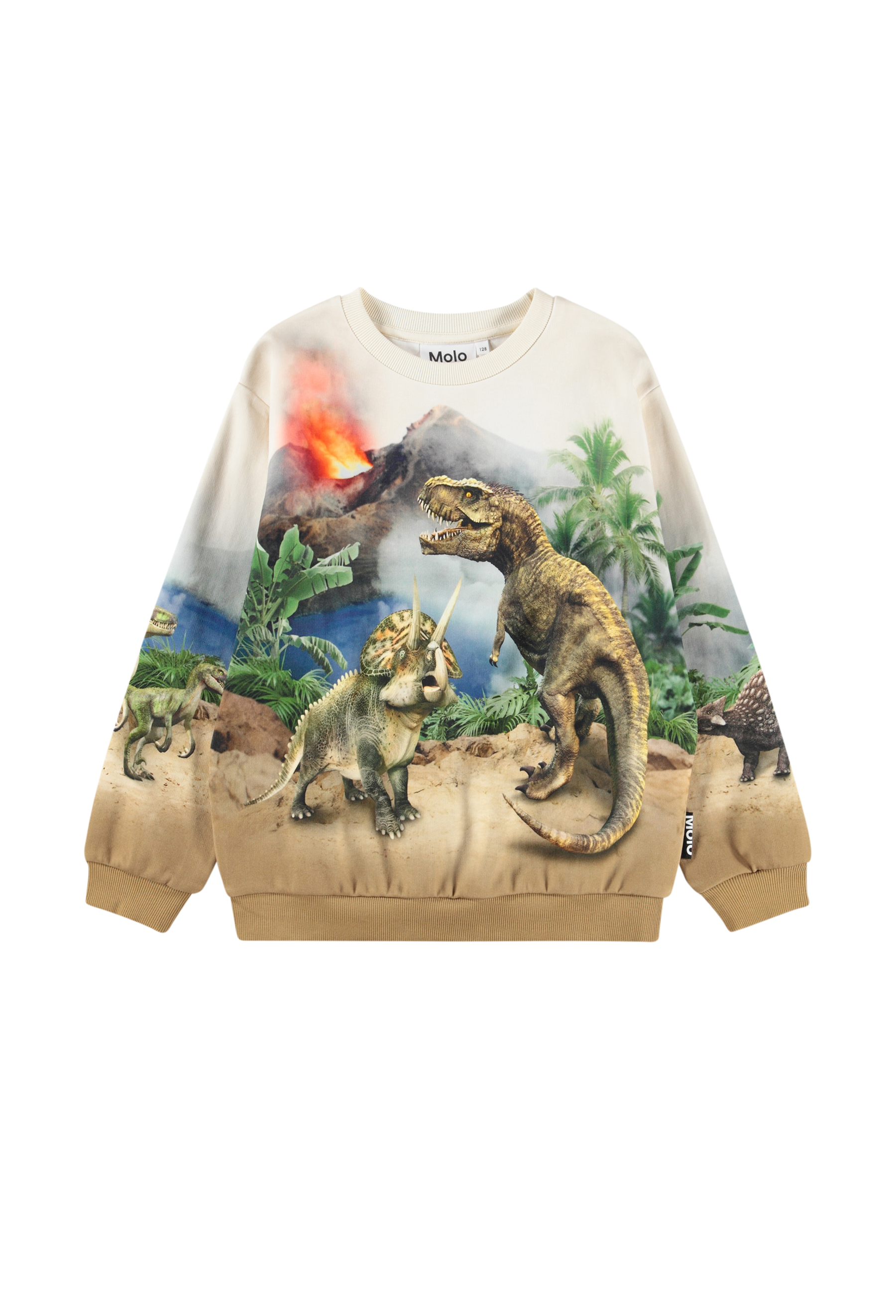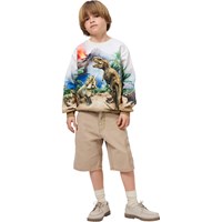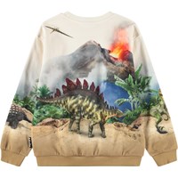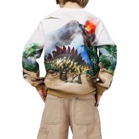 Sweatshirt i blød, økologisk bomuld med ribkanter ved hals, ærmer og i bunden. Sweatshirten har en løs og afslappet pasform med et dinosaurerprint, der går hele vejen rundt om blusen og skaber en flot symmetri.