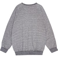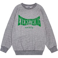Gråmelange sweatshirt med raglan snit, ribkant ved hals, håndled og hofte. Sweatshirten har en løs pasform og et placeret print på fronten i klar grøn af teksten "Everything Exists", bøjet henover brystet. Denne style har en ubørstet inderside, der gør den dejlig kølig på en varm dag.
