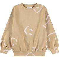 Beige sweatshirt i blød, økologisk bomuld med ribkanter ved hals, ærmer og bund. Sweatshirten har en løs og afslappet pasform med et print af smilende ansigter.