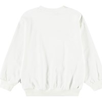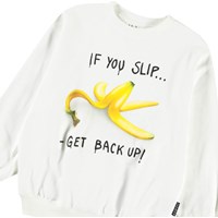 Hvid sweatshirt i blødt økologisk bomuld med ribkanter ved hals, ærmer og i bunden af blusen. Sweatshirten har en løs pasform med et frontprint af en bananskrald og teksten "If you slip.... Get back up!".