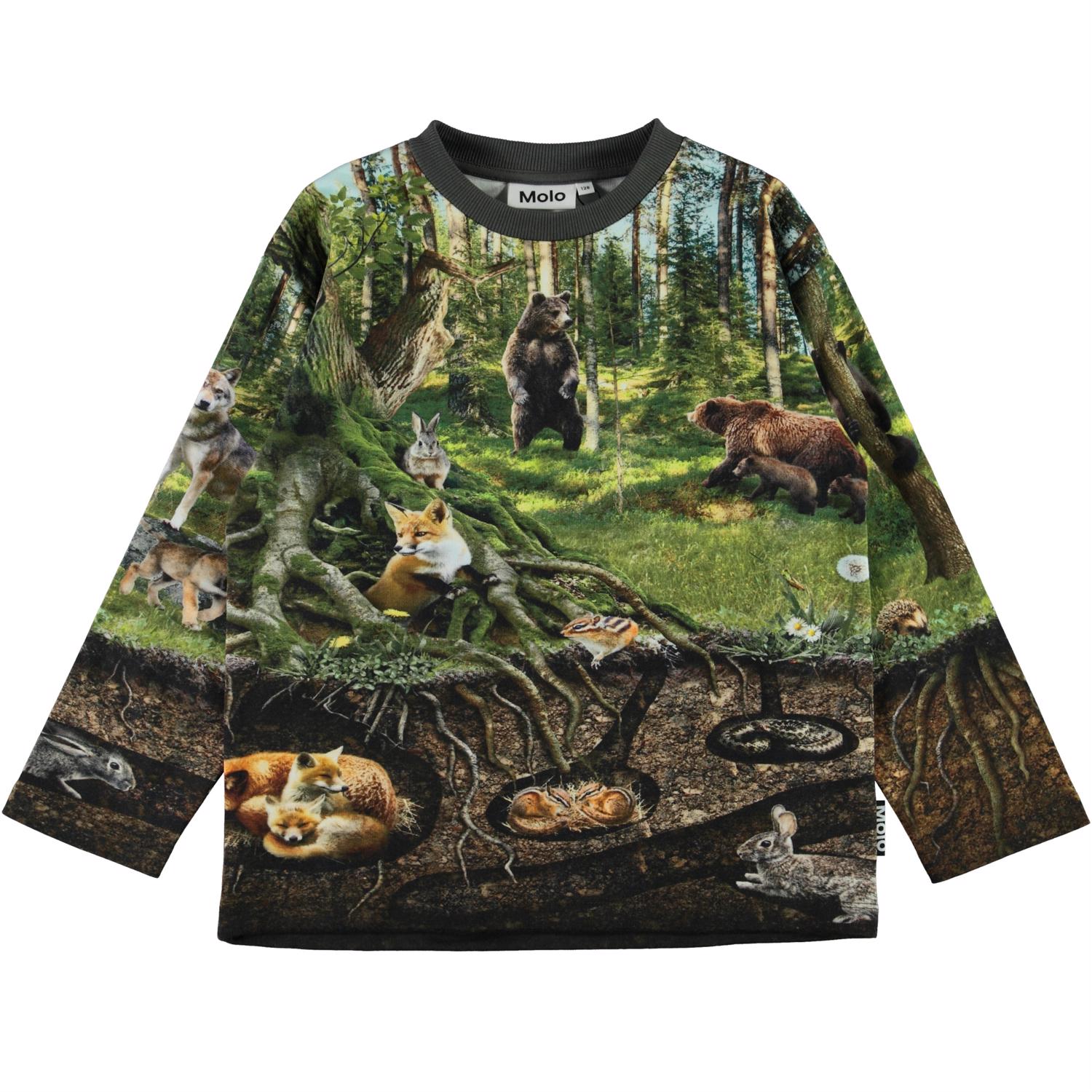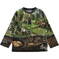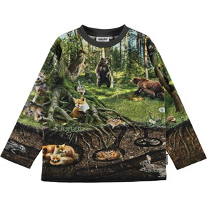 Mountoo er en langærmet bluse med print af skovens dyr. Se hvilke dyr som germmer sig over og under jorden.