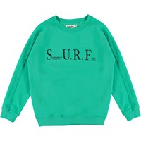 Murph er en grøn sweatshirt med teksten 'Surf' på fronten. Murph har lange ærmer og ribkant ved hals, bund og ærmer.