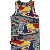 Jim er en undertrøje med printet 'Full Speed', som er hurtige racerbiler på en forskelligt farvet kørebane.