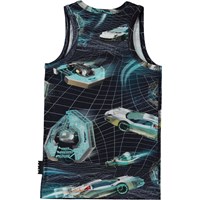 Jim er en blå undertrøje med printet 'Time Machines'.