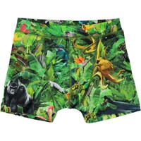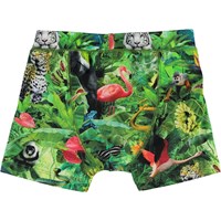 Boxershorts med printet 'Fantasy Jungle', hvor der er mange forskellige dyr i junglen, som ikke plejer at befinde sig der. Certificeret af Ecocert Greenlife, certifikationsnr. 197496.