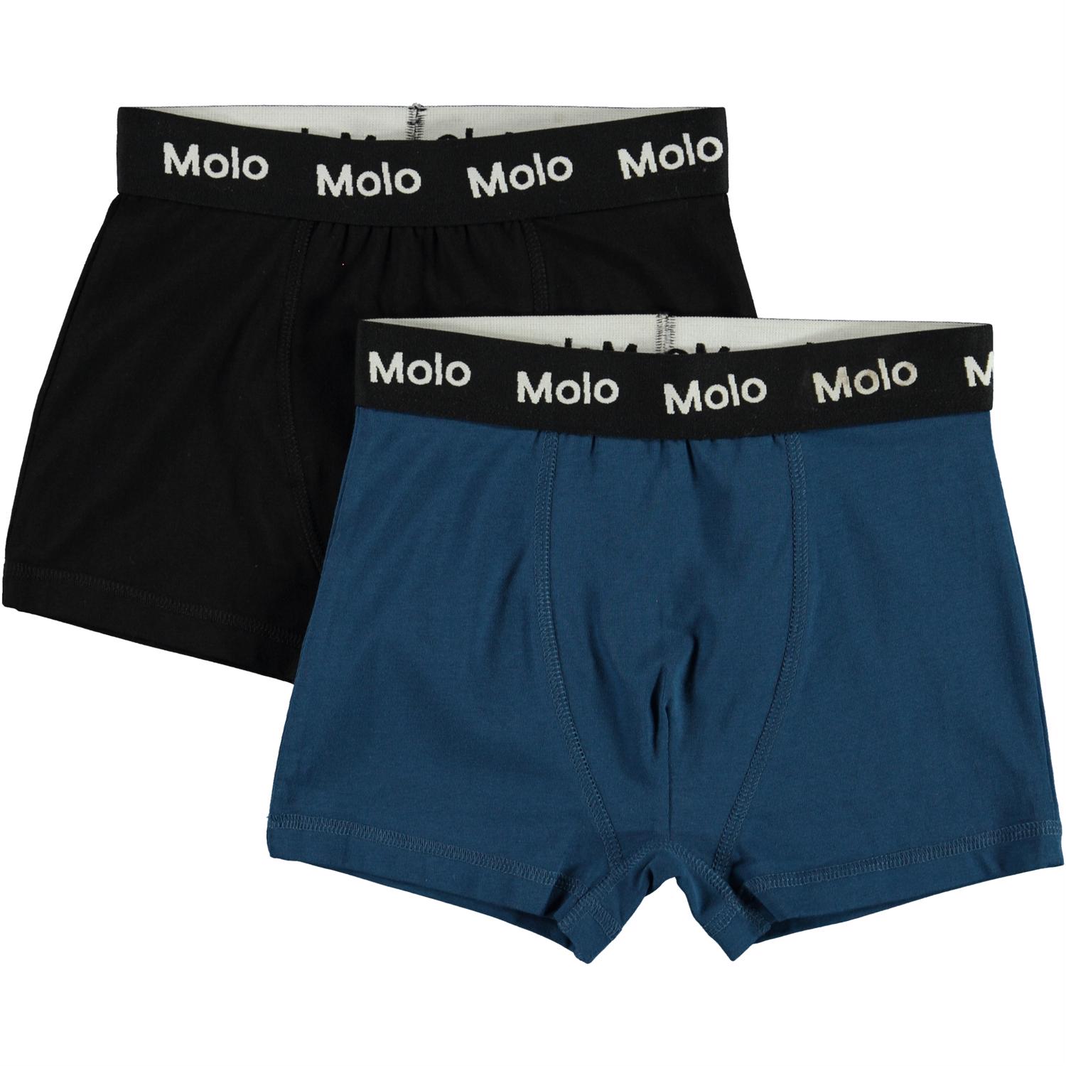 Pakke med to par boxershorts i blå og sort. Boxershortsene har en bred elastisk talje for god komfort.