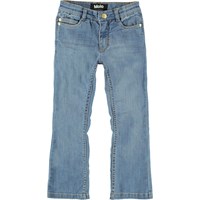 Aliza er et par lyse blå jeans med et vasket look og let vidde og svaj i benene. Bukserne har for og baglommer. Bemærk, at størrelserne til og med 134 har trykknap og ikke almindelig jeansknap.