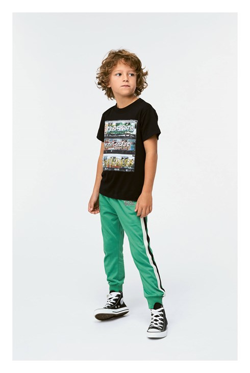 Anto er et par vintage inspireret trackpants i grøn med hvid og sort stribe i siderne. Anto har teksten 'Different Together' printet på den ene side.