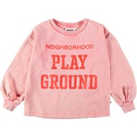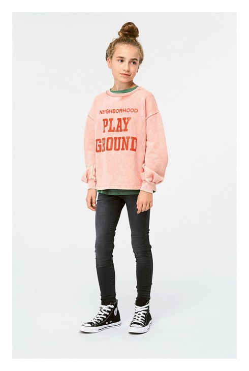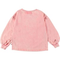 Martina er en rosa sweatshirt i et vasket look med brede ærmer og printet tekst i rød på brystet.