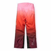 Vind- og vandtætte overtræksbukser i røde gradient farver i genanvendt polyester. Bukserne har trykknap- og lynlås lukning samt udvendige, justerbare velcro-stropper, bælte stropper til Molos seler (ekstra tilbehør) og en justerbar benåbning med snefang, samt ekstra forstærkning mellem benene. Bukserne er udstyret med vandtætte lommer, tekst bagpå med refleks effekt, som sikrer større synlighed i trafikken. Ydermere er bukserne foret med fleece udsatte steder, samt vatteret med 3M™ Thinsulate™.