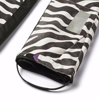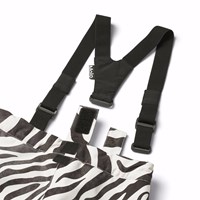 Vind- og vandtætte overtræksbukser i genanvendt polyester, i sorte og hvide zebrastriber. Bukserne har har knap og lynlås lukning samt en indevendig justerbar elastik, bælte stropper til Molos seler (ekstra tilbehør) og en justerbar benåbning med snefang, samt ekstra forstærkning mellem benene. Bukserne er udstyret med lommer, en stor refleks bagpå, som sikre større synlighed i trafikken. Ydermere er bukserne foret med fleece udsatte steder, samt foret med 3M™ Thinsulate™, hvis lethed giver barnet en større bevægelighed.