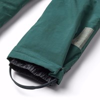 Mørkegrønne overtræksbukser i nylon. Bukserne har elastik i taljen samt en indevendig justerbar elastik, bælte stropper til Molos seler (ekstra tilbehør) og benåbning med snefang. Bukserne er udstyret med en stor refleks bagpå, som sikre større synlighed i trafikken.