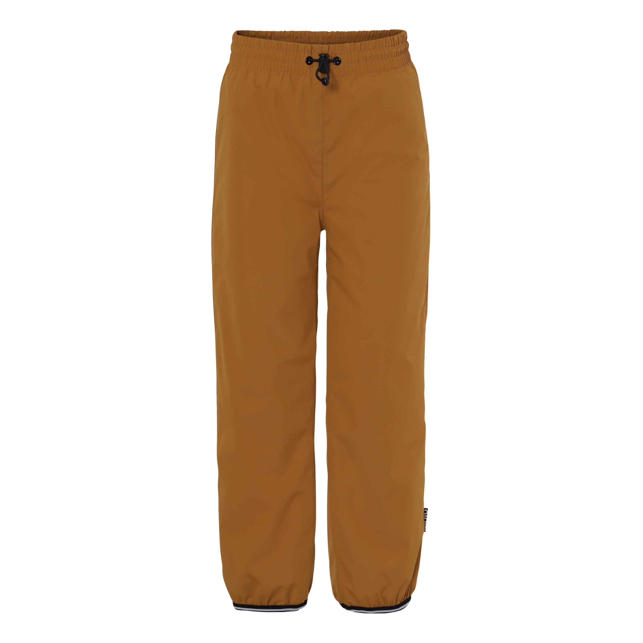 Lækre, forede all-around overtræksbukser i vandtæt materiale. Bukserne er i en gylden sennepsfarve og har elastisk, justerbar talje samt refleks bagpå det ene bukseben. Bukserne er lavet i et vindtæt, vandtæt og åndbart materiale og har tapede sømme. Dette produkt har en vandafvisende PFC-fri imprægnering (indeholder f.eks. ikke PFOS, PFOA og lignende). Vandsøjletryk: 5.000 mm. Åndbarhed: 5.000 g/m2/24t.