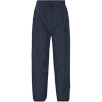 Forede overtræksbukser i mørkeblå med elastisk, justerbar talje, refleks på det ene bukseben samt elastik ved benåbningen. Bukserne er vandtætte og har tapede sømme, hvilket gør dem velegnede som regntøj i de kolde efterårs- og vintermåneder. Samtidig fungerer de også som hverdagsovertøj i overgangsperioderne, hvor vejret kan være meget omskifteligt. Vandsøjletryk: 5.000 mm. Åndbarhed: 5.000 g/m²/24t. Foret er fremstillet af genanvendt polyester.