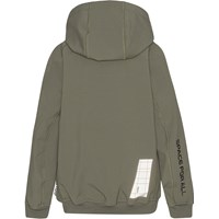 Grøn NASA softshelljakke med broderede lapper i vindtæt og vandafvisende materiale der giver et vandsøjletryk op til 5.000 mm, som kan modstå pludselige regnbyger, og samtidig har en god åndbarhed på 5.000 g/m2/24t. Jakken har aftagelig hætte og elastisk talje, opretstående krave og lynlås med hagebeskytter, som modvirker friktion mod huden. Lommer i siderne samt vindfang i ærmerne og elastisk kant i bunden og nederst i ærmerne. Lukkede sømme, som forhindrer utætheder. Reflekterende detaljer, som giver øget synlighed i trafikken. Jakken er desuden meget let og fleksibel, hvilket gør den rigtig god til bevægelse og velegnet til mange forskellige aktiviteter. Der er anvendt en vand- og smudsafvisende coating, uden brug af kemikalier som PFOS, PFOA og lignende.