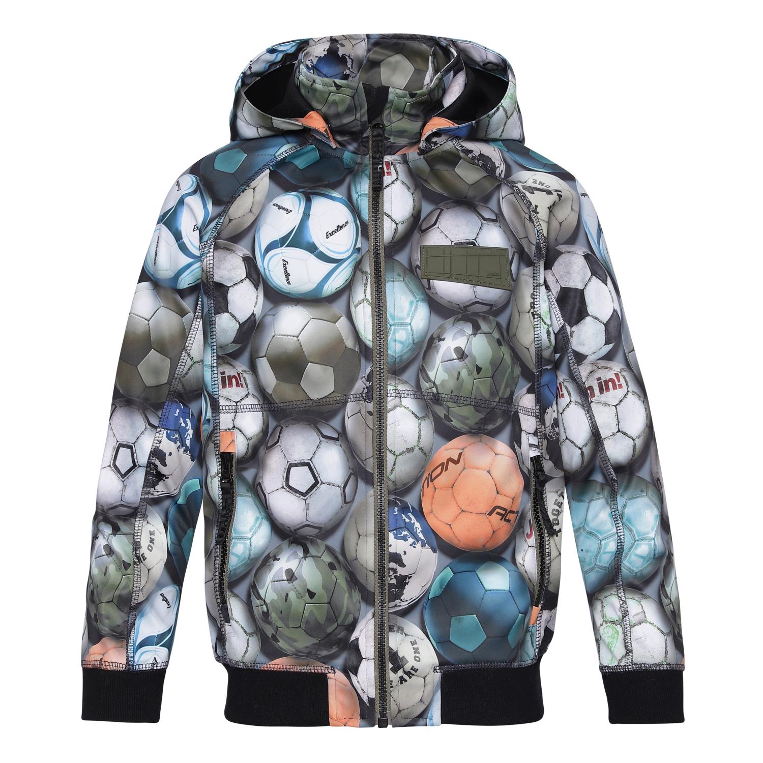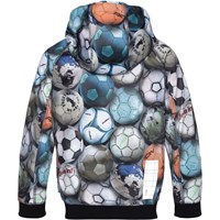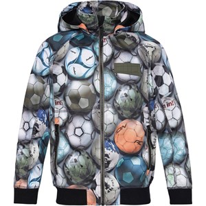 Cloudy er en sporty og vandtæt softshell jakke med print fodbolde. Cloudy har aftagelig hætte, lynlås ned langs fronten, lommer i siden samt vindfang i ærmerne og elastisk kant i bunden. Molo's softshell jakker er et oplagt valg til overgangsperioderne, da ydermaterialet er vindtæt, vandtæt og åndbart. Dette produkt har en vandafvisende PFC-fri imprægnering (indeholder f.eks. ikke PFOS, PFOA og lignende). Vandsøjletryk: 8.000 mm. Åndbarhed: 3.000 g/m2/24t.