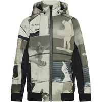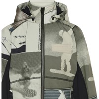 Cloudy er en sporty og vandtæt softshell jakke i beige med print af snowboarder. Cloudy har aftagelig hætte, lynlås ned langs fronten, lommer i siden samt vindfang i ærmerne og elastisk kant i bunden. Molo's softshell jakker er et oplagt valg til overgangsperioderne, da ydermaterialet er vindtæt, vandtæt og åndbart, mens den indvendige fleece er recycled. Dette produkt har en vandafvisende PFC-fri imprægnering (indeholder f.eks. ikke PFOS, PFOA og lignende). Vandsøjletryk: 8.000 mm. Åndbarhed: 5.000 g/m2/24t.