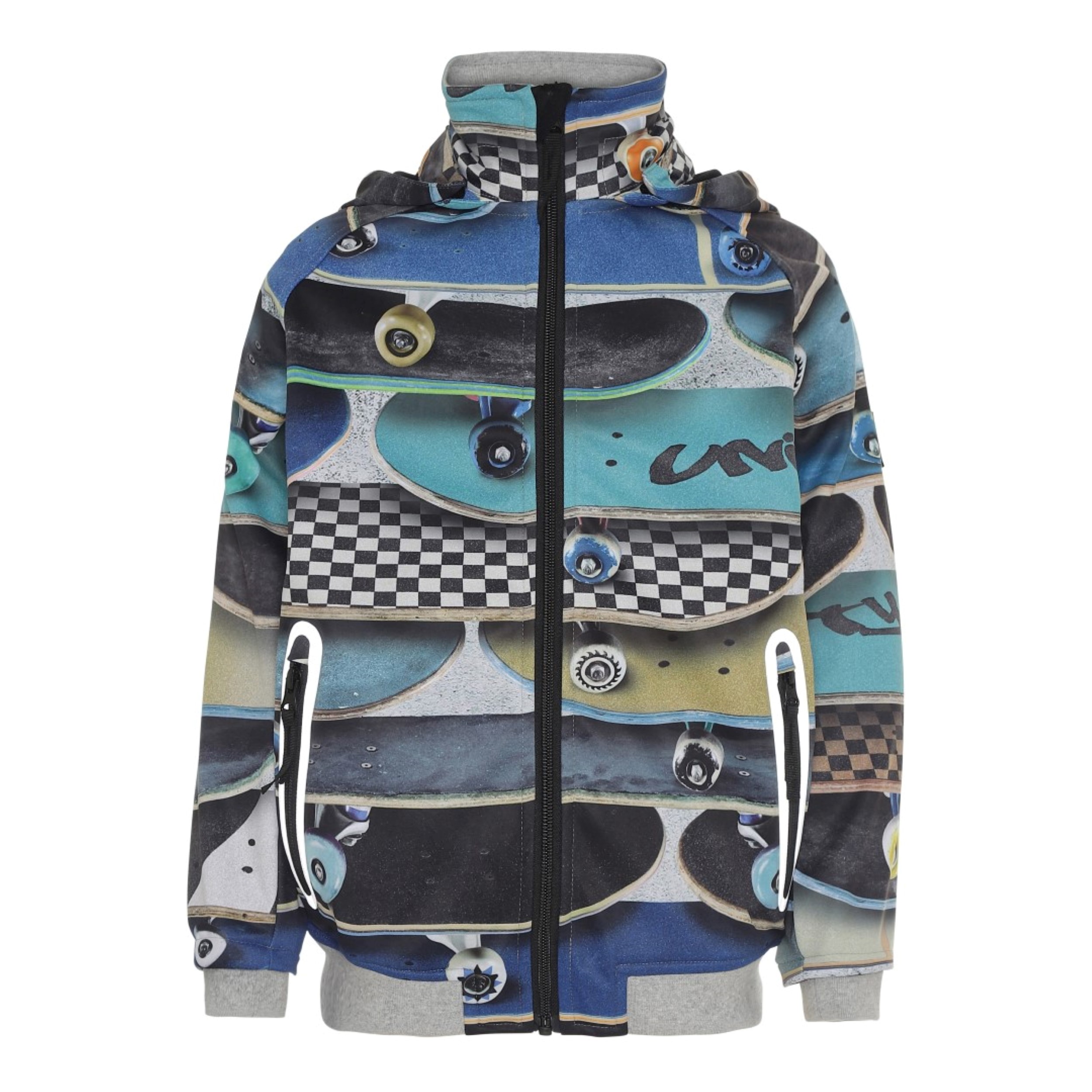 Cloudy er en sporty og vandtæt softshell jakke med print af skateboards. Cloudy har aftagelig hætte, lynlås ned langs fronten, lommer i siden samt vindfang i ærmerne og elastisk kant i bunden. Molo's softshell jakker er et oplagt valg til overgangsperioderne, da ydermaterialet er vindtæt, vandtæt og åndbart. Dette produkt har en vandafvisende PFC-fri imprægnering (indeholder f.eks. ikke PFOS, PFOA og lignende). Vandsøjletryk: 8.000 mm. Åndbarhed: 3.000 g/m2/24t