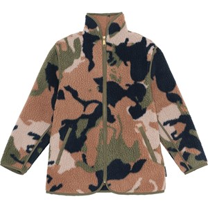 Halina er Molo's nye fleecejakke i rosa med camouflage print. Jakken har lynlåslukning og grønne kantbånd.