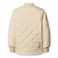 Beige, quiltet, vandafvisende termojakke i polyester. Jakken har en almindelig pasform, forlommer, lynlås med vindstolpe samt ribkanter ved hals og ærmer, hvilket beskytter mod  vinden.