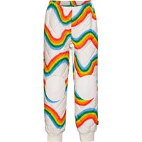 Quiltet, beige termobukser i 100% genanvendt polyester med alloverprint af bølgende regnbuer. Bukserne har ribkant i benene og justerbar elastik i taljen. Termotøj er ideelt i overgangsperioderne, hvor vinterovertøjet er for varmt, eller sommerjakken er for kold.