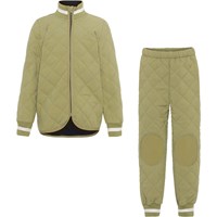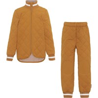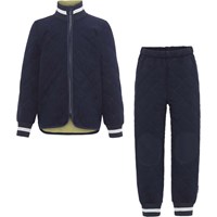 Hatton er et let isolerende termosæt i mørkeblå, som er designet med en indvendig kontrastfarve i cedergrøn. Jakken har ribkanter ved hals- og ærmeafslutning og Molo's ikoniske refleksstjerne på ryggen, som sikrer synlighed i den mørke tid. Bukserne har elastik i taljen, ribafslutning ved benene og refleksstjerne bag på det ene ben. Derudover har bukserne forstærkninger i matchende farve på knæene og enden, hvilket gør bukserne ekstra holdbare til al slags leg.