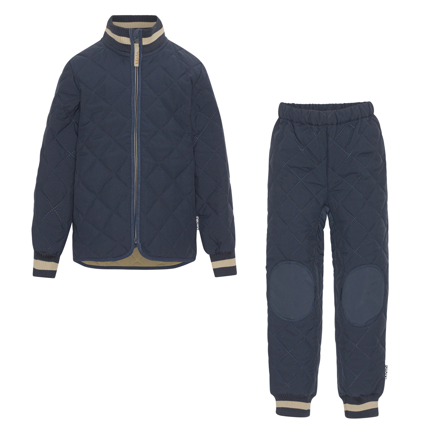Hatton er et let isolerende termosæt i mørkeblå. Jakken har ribkanter ved hals- og ærmeafslutning og Molo's ikoniske refleksstjerne på ryggen, som sikrer synlighed i den mørke tid. Bukserne har elastik i taljen, ribafslutning ved benene og refleksstjerne bag på det ene ben. Derudover har bukserne forstærkninger i matchende farve på knæene og enden, hvilket gør bukserne ekstra holdbare til al slags leg.