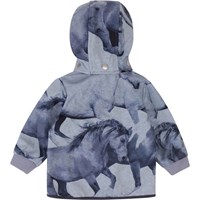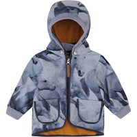Hide er en funktionel og blød softshell jakke til babyer og det mindre barn. Jakken er designet med et smukt hesteprint og med kontrastfarve på indersiden. Hide har aftagelig hætte, lynlås ned langs fronten, frontlommer, refleks bagpå samt rib ved ærmer og hætte. Molo's softshell jakker er et oplagt valg til vuggestue/børnehave, da ydermaterialet er vindtæt, vandtæt og åndbart, mens den indvendige fleece er fremstillet af genanvendt polyester fra plastikflasker. Dette produkt har en vandafvisende PFC-fri imprægnering (indeholder f.eks. ikke PFOS, PFOA og lignende). Vandsøjletryk: 8.000 mm. Åndbarhed: 5.000 g/m2/24t. Sømmene er ikke tapede.