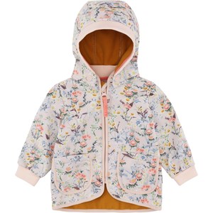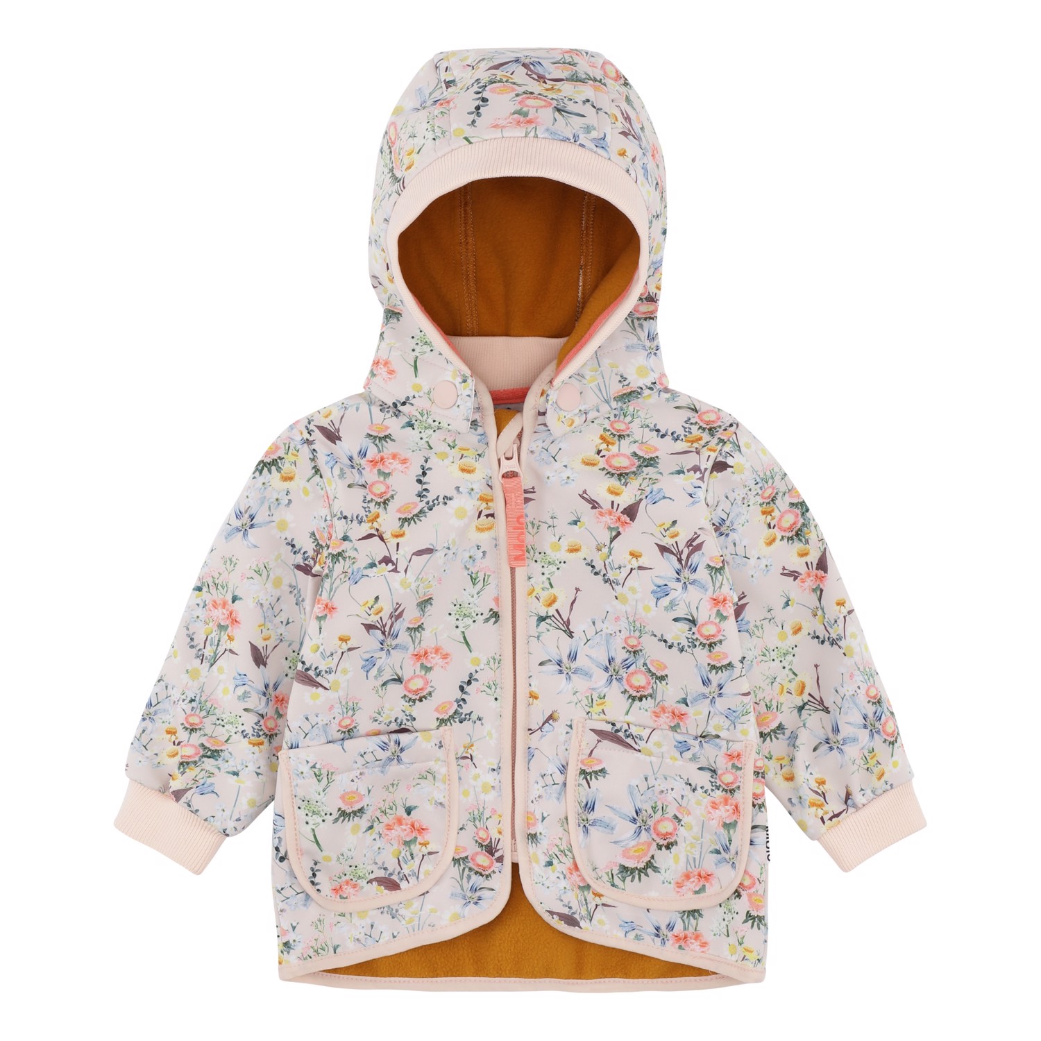 Hide er en funktionel og blød softshell jakke til babyer og det mindre barn. Jakken er designet med det fineste blomsterprint og med kontrastfarve på indersiden. Hide har aftagelig hætte, lynlås ned langs fronten, frontlommer, refleks bagpå samt rib ved ærmer og hætte. Molo's softshell jakker er et oplagt valg til vuggestue/børnehave, da ydermaterialet er vindtæt, vandtæt og åndbart, mens den indvendige fleece er fremstillet af genanvendt polyester fra plastikflasker. Dette produkt har en vandafvisende PFC-fri imprægnering (indeholder f.eks. ikke PFOS, PFOA og lignende). Vandsøjletryk: 8.000 mm. Åndbarhed: 5.000 g/m2/24t. Sømmene er ikke tapede.