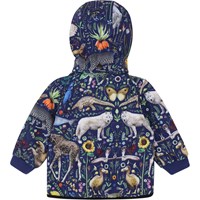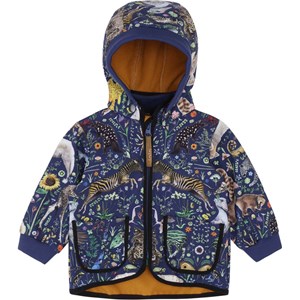 Hide er en funktionel og blød softshell jakke til babyer og det mindre barn. Jakken er designet med et fantasifuldt dyreprint og med kontrastfarve på indersiden. Hide har aftagelig hætte, lynlås ned langs fronten, frontlommer, refleks bagpå samt rib ved ærmer og hætte. Molo's softshell jakker er et oplagt valg til vuggestue/børnehave, da ydermaterialet er vindtæt, vandtæt og åndbart, mens den indvendige fleece er fremstillet af genanvendt polyester fra plastikflasker. Dette produkt har en vandafvisende PFC-fri imprægnering (indeholder f.eks. ikke PFOS, PFOA og lignende). Vandsøjletryk: 8.000 mm. Åndbarhed: 5.000 g/m2/24t. Sømmene er ikke tapede.