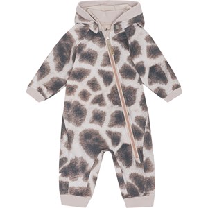 Hill er en funktionel og blød softshell dragt til babyer og det mindre barn. Heldragten er her med fint giraf print. Hill har aftagelig hætte, bløde ribafslutninger, refleks bagpå samt en lang lynlås foran, så det er nemt at iføre barnet dragten. Molo's softshell dragter er et oplagt valg til vuggestue/børnehave, da ydermaterialet er vindtæt, vandtæt og åndbart. Produktet har en vandafvisende PFC-fri imprægnering (indeholder f.eks. ikke PFOS, PFOA og lignende). Vandsøjletryk: 8.000 mm. Åndbarhed: 5.000 g/m2/24t. Sømmene er ikke tapede.