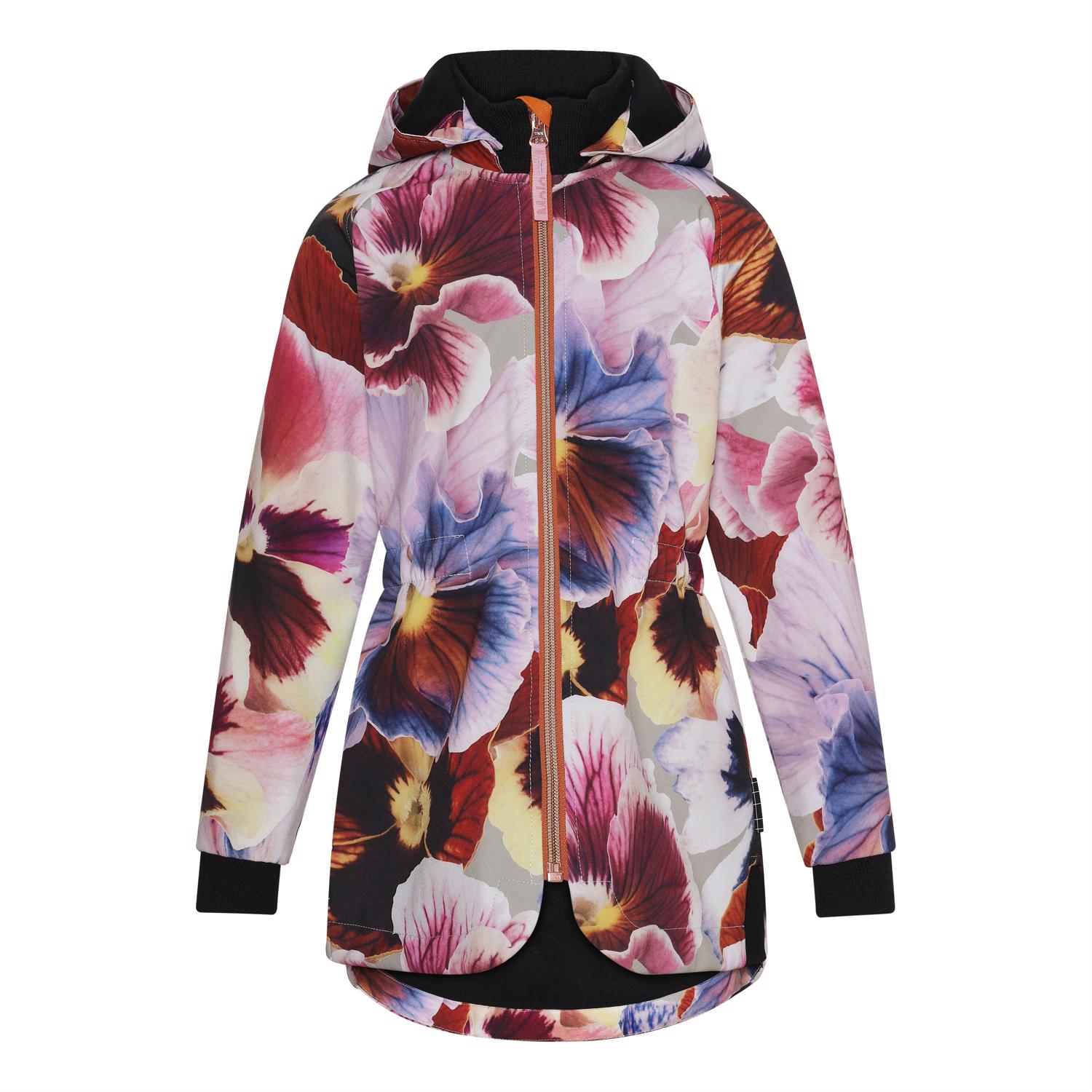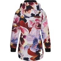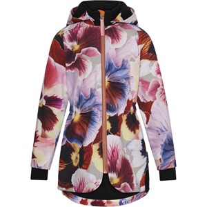 Hillary er en figursyet softshell jakke med print af store blomster i varme farver. Jakken har elastisk talje, aftagelig hætte, lynlås ned langs fronten, elastisk kant ved ærmeafslutning samt Molo's velkendte stjernerefleks bagpå. Molo's softshell jakker er et oplagt valg til overgangsperioderne, da ydermaterialet er vindtæt, vandtæt og åndbart. Foret og inderstoffet er recycled fremstillet af genanvendt polyester. Dette produkt har en vandafvisende PFC-fri imprægnering (indeholder f.eks. ikke PFOS, PFOA og lignende). Vandsøjletryk: 8.000 mm. Åndbarhed: 5.000 g/m2/24t
