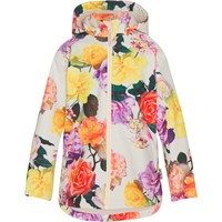 Hillary er en funktionel softshell jakke i grå med blomster print. Jakken har en praktisk længde med elastik i ryggen, hvilket giver en fin pasform. Der er aftagelig hætte, lynlås ned langs fronten, frontlommer, rib ved ærmeafslutning samt refleks bagpå. Molo's softshell jakker er et oplagt valg til overgangsperioderne, da ydermaterialet er vindtæt, vandtæt og åndbart. Produktet har en vandafvisende PFC-fri imprægnering (indeholder f.eks. ikke PFOS, PFOA og lignende). Vandsøjletryk: 8.000 mm. Åndbarhed: 5.000 g/m2/24t. Sømmene er ikke tapede.