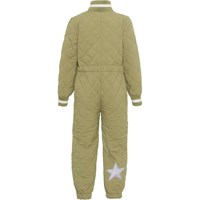 Hollyn er en praktisk og let isolerende termo heldragt i cedergrøn med indvendig kontrastfarve i mørkeblå. Heldragten er oplagt til det mindre barn og har ribkanter ved hals- og ærmeafslutning, lommer i siden samt regulerbar elastik i ryggen. Heldragten har Molo's ikoniske refleksstjerne bag på det ene ben, det gælder dog ikke str. 134/140. Derudover har str. 74/80 - 98/104 forstærkning på knæene og enden i samme farve som heldragten, hvilket ikke ses på billedet.