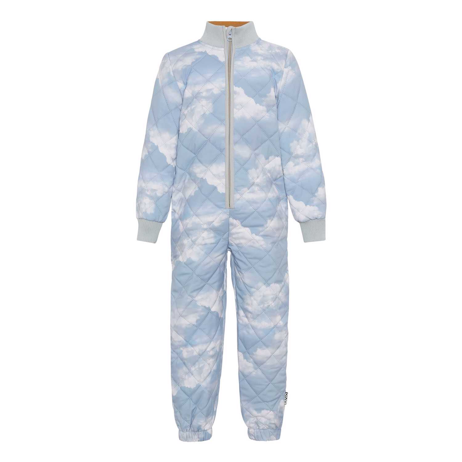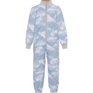 Hollyn er en praktisk og let isolerende termo heldragt med skyprint og indvendig kontrastfarve i gylden gul. Heldragten er oplagt til det mindre barn og har ribkanter ved hals- og ærmeafslutning, lommer i siden samt regulerbar elastik i ryggen. Heldragten har Molo's ikoniske refleksstjerne bag på det ene ben, det gælder dog ikke str. 134/140. Derudover har str. 74/80 - 98/104 forstærkning på knæene og enden i samme farve som heldragten, hvilket ikke ses på billedet.