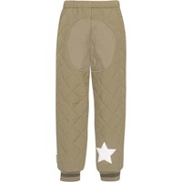 Hoti er et par let isolerende termobukser i støvet grøn. Bukserne har elastik i taljen, ribafslutning ved benene og Molo's ikoniske refleksstjerne bag på det ene ben, som sikrer synlighed i den mørke tid. Derudover har bukserne forstærkninger i matchende farve på knæene og enden, hvilket gør bukserne ekstra holdbare til al slags leg.