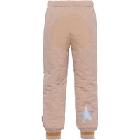 Hoti er et par let isolerende termobukser i nougat med en indvendig kontrastfarve i gylden gul. Bukserne har elastik i taljen, ribafslutning ved benene og Molo's ikoniske refleksstjerne bag på det ene ben, som sikrer synlighed i den mørke tid. Derudover har bukserne forstærkninger i matchende farve på knæene og enden, hvilket gør bukserne ekstra holdbare til al slags leg.
