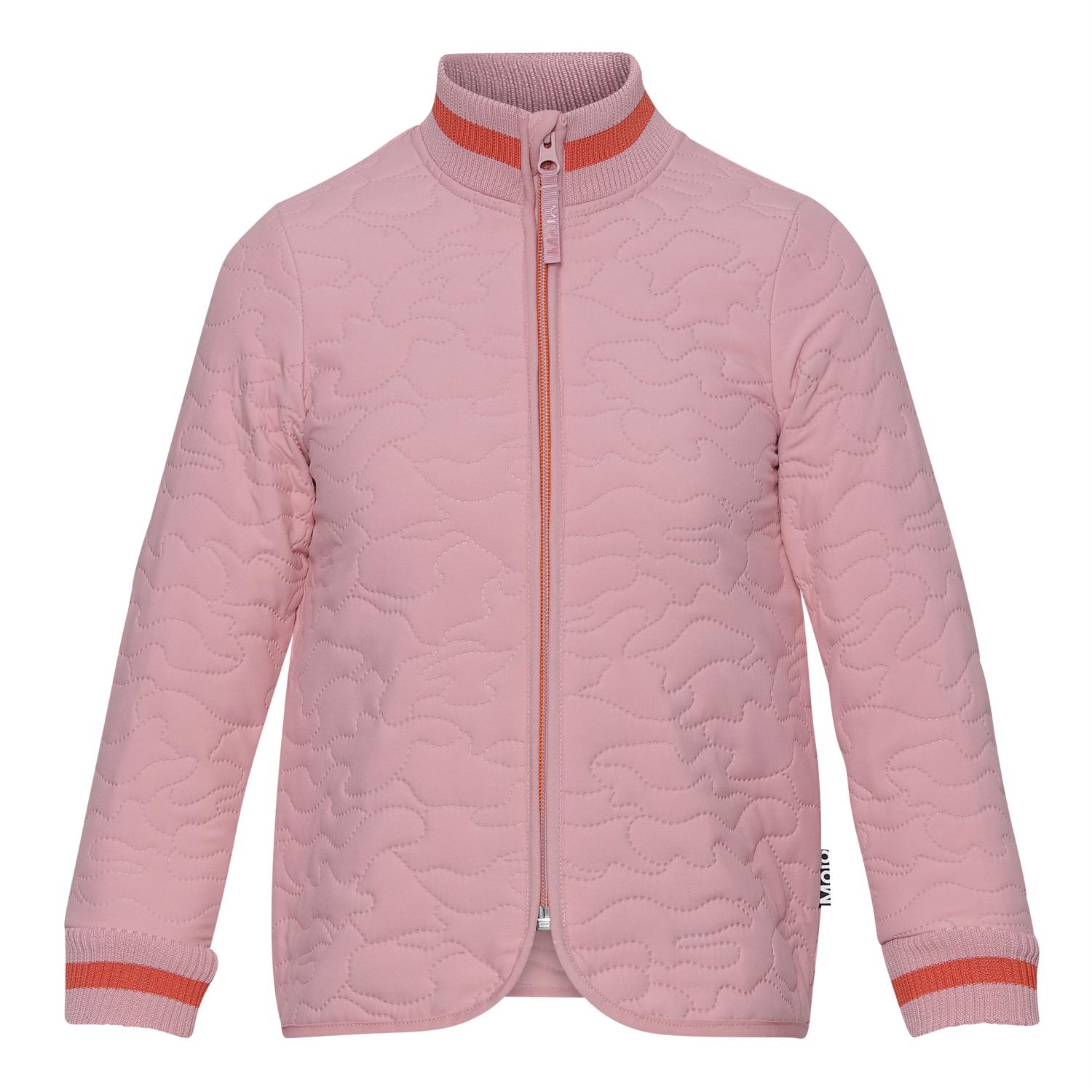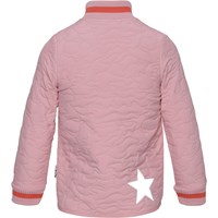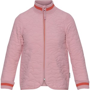 Husky er en thermo jakke i rosa med flot stiknings mønster. Jakken har rød lynlås og rød stribet ribkant ved hals og ærmeafslutning.