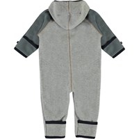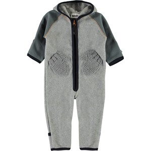 Udo er en baby fleecedragt i lysgrå med mørkere grå ærmer og strikkede lommer, som ligner små handsker. Dragten har lynlåslukning og en hætte. Molo's fleecedragter varmer og virker isolerende. Brug den alene eller som et ekstra lag under flyverdragten på de meget kolde dage. Denne style vil være med fødder fra størrelse 56-74. Uden fødder fra størrelse 80-92.