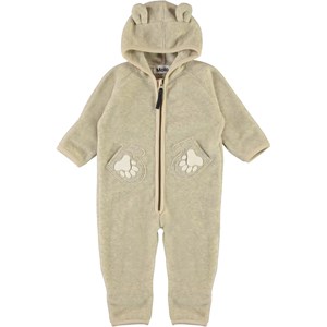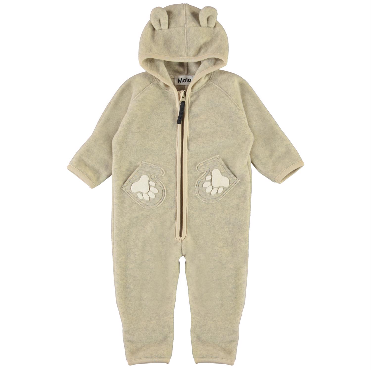 Udo er en baby fleecedragt i lysegul med strik lommer, som ligner små handsker med poter på. Dragten har lynlåslukning og en hætte med små påsyede ører. Molo's fleecedragter varmer og virker isolerende. Brug den alene eller som et ekstra lag under flyverdragten på de meget kolde dage. Denne style vil være med fødder fra størrelse 56-74. Uden fødder fra størrelse 80-92.