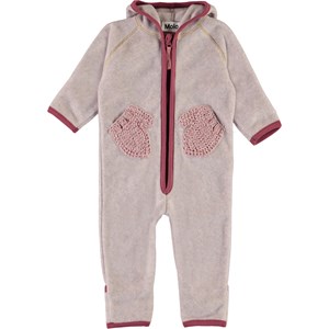 Udo er en baby fleecedragt i lys rosa med mørke rosa kanter og strik lommer, som ligner små handsker. Dragten har lynlåslukning og en hætte. Molo's fleecedragter varmer og virker isolerende. Brug den alene eller som et ekstra lag under flyverdragten på de meget kolde dage. Denne style vil være med fødder fra størrelse 56-74. Uden fødder fra størrelse 80-92.