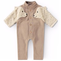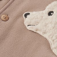 Beige og råhvid fleecedragt til de mindste. Dragten har en praktisk knappelukning på fronten og søde isbjørneærmer. Fleecedragten varmer og virker isolerende, og den kan derfor bruges alene eller som et ekstra lag under flyverdragten på de koldeste dage. Denne style leveres med fødder fra størrelse 56-74 og uden fødder fra størrelse 80-92.