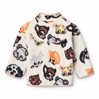 Hvid fleecejakke til de mindste i genanvendt polyester med et print af farverige dyr fra gamle tegnefilm. Den bløde jakke har en praktisk knappelukning, en normal pasform og fungerer både godt alene eller som et ekstra lag under en jakke.