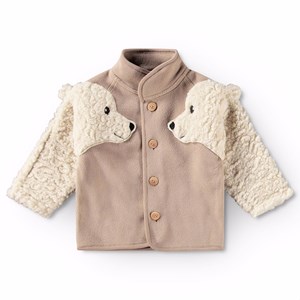 Beige og råhvid fleecejakke til de mindste. Jakken har en praktisk knappelukning på fronten og søde isbjørneærmer. Fleecejakken virker isolerende og kan derfor bruges alene eller som et ekstra lag under overtøjet på de koldeste dage.