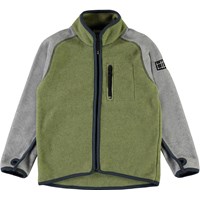 Ulrick er en fleecejakke i khaki grøn med grå ærmer. Fleecejakken lukkes med lynlås og har en enkelt brystlomme, samt hul til tommelfingrene i ærmerne. Molo's fleecejakker varmer og virker isolerende. Brug den alene eller som et ekstra lag under en anden jakke på de meget kolde dage.