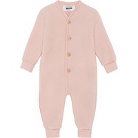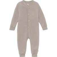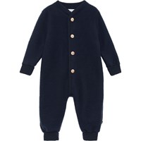 Lilla babyheldragt i blød fleece-kvalitet af 100 % merinould. Sparkedragten er særdeles velegnet som overtøj, når der skal gås tur i eller soves i barnevognen i de kolde efterårs- og vintermåneder. Dragten kan med fordel også benyttes indendørs, hvis der er gulvkoldt. Den har en rummelig pasform med knapper langs fronten og tætsluttende ribkanter med opsmøg ved ben- og ærmegab.